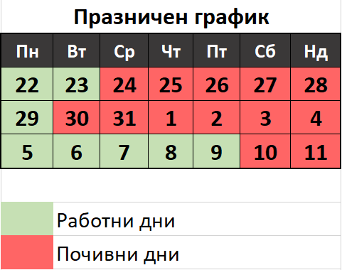 Уведомяваме Ви, че Топломакс ООД няма да работи в периода от 24.12.2025 г. до 04.01.2026 г., с изключение на 29.12.2025 г., който ще бъде работен ден за офис София.